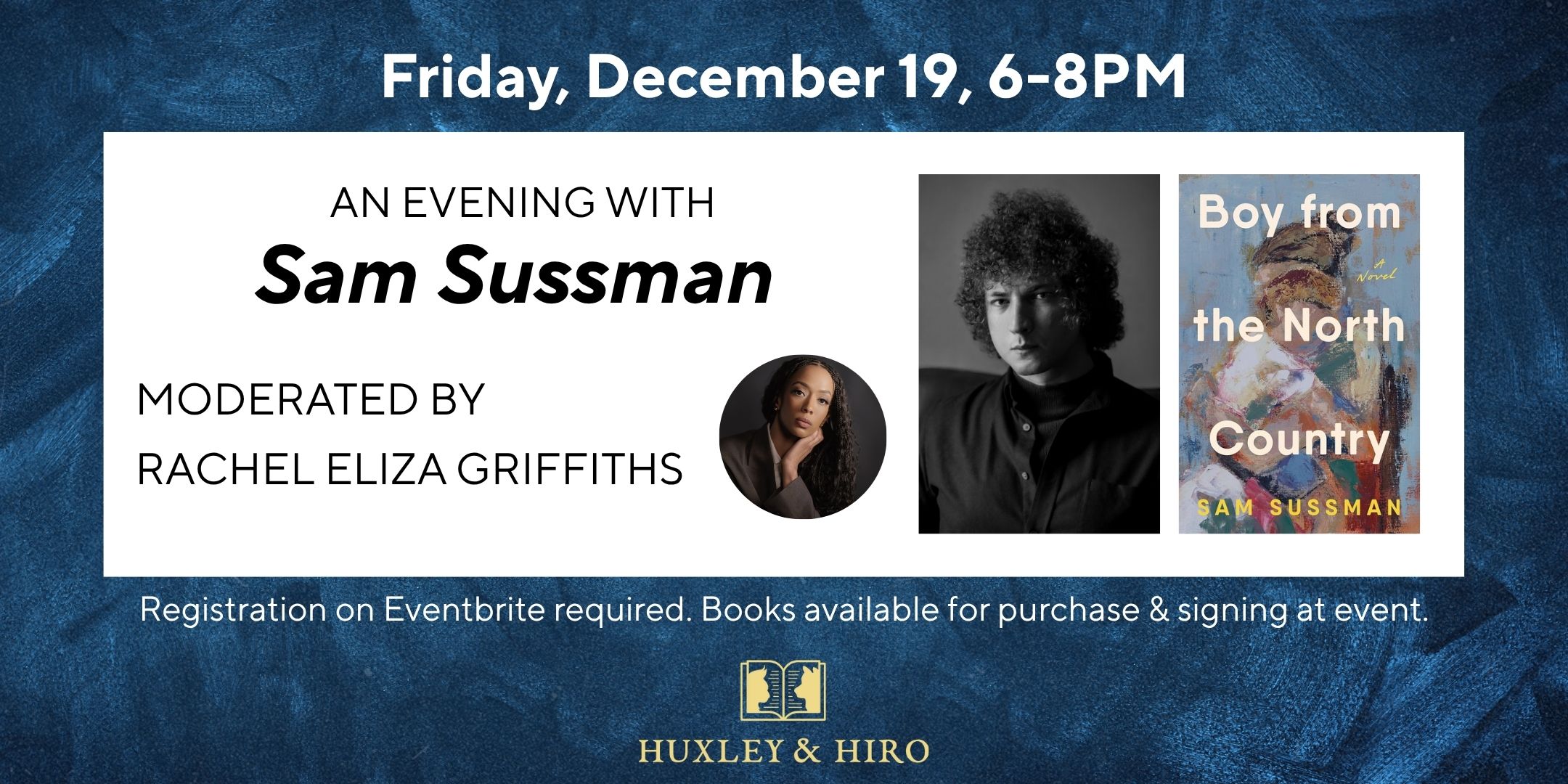 Huxley & Hiro is thrilled to host author Sam Sussman for a conversation about his debut novel, Boy from the North Country. Moderated by Rachel Eliza Griffiths, it promises to be an evening of insight and inspiration!