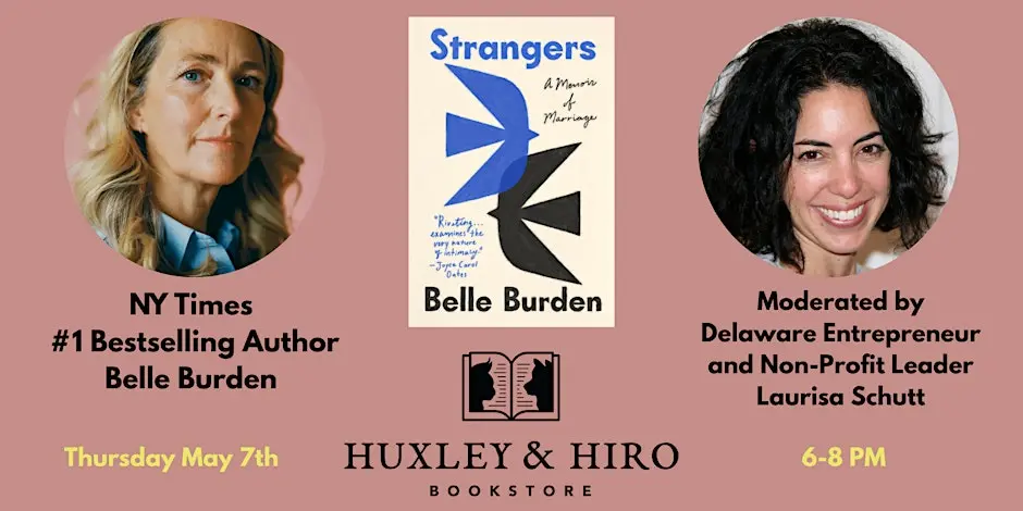 Huxley and Hiro thrilled to host new literary talent, Belle Burden for an evening discussion of her debut memoir Strangers: A Memoir of Marriage! Moderated by Burden’s lifelong friend and Greenville resident Laurisa Schutt, it promises to be an evening of insight and inspiration!