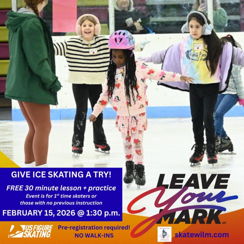 Community Leave Your Mark โ Intro to Ice Skating Celebrate Olympic fever and Team USA’s upcoming triumphs with a FREE ice skating group lesson… The Skating Club of Wilmington Information & Tickets