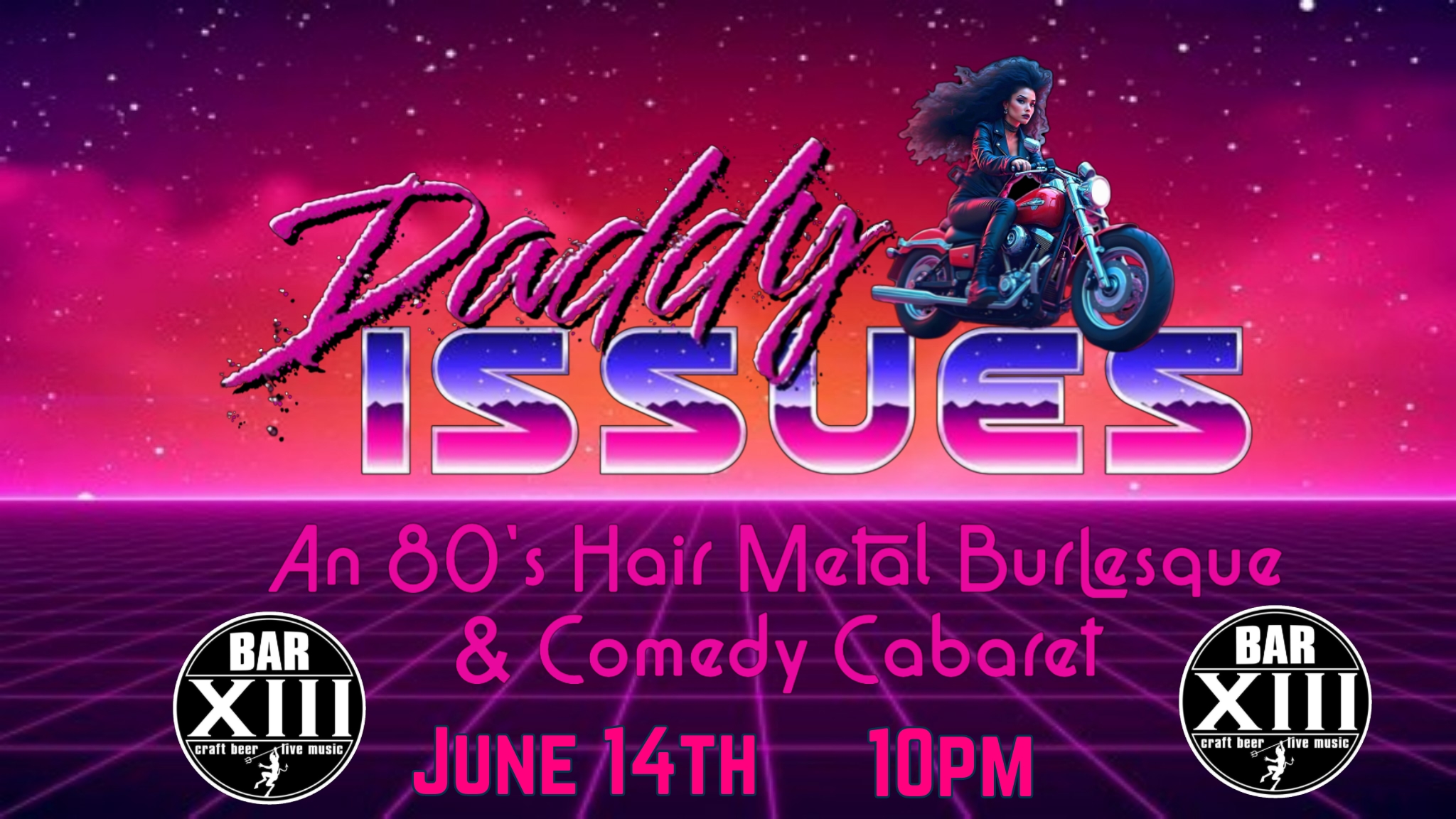 This Father’s day weekend Bar XIII is celebrating all the Dads & Daddies out there with DADDY ISSUES… a night filled with Hair Metal Burlesque, Comedy, and everything ’80s