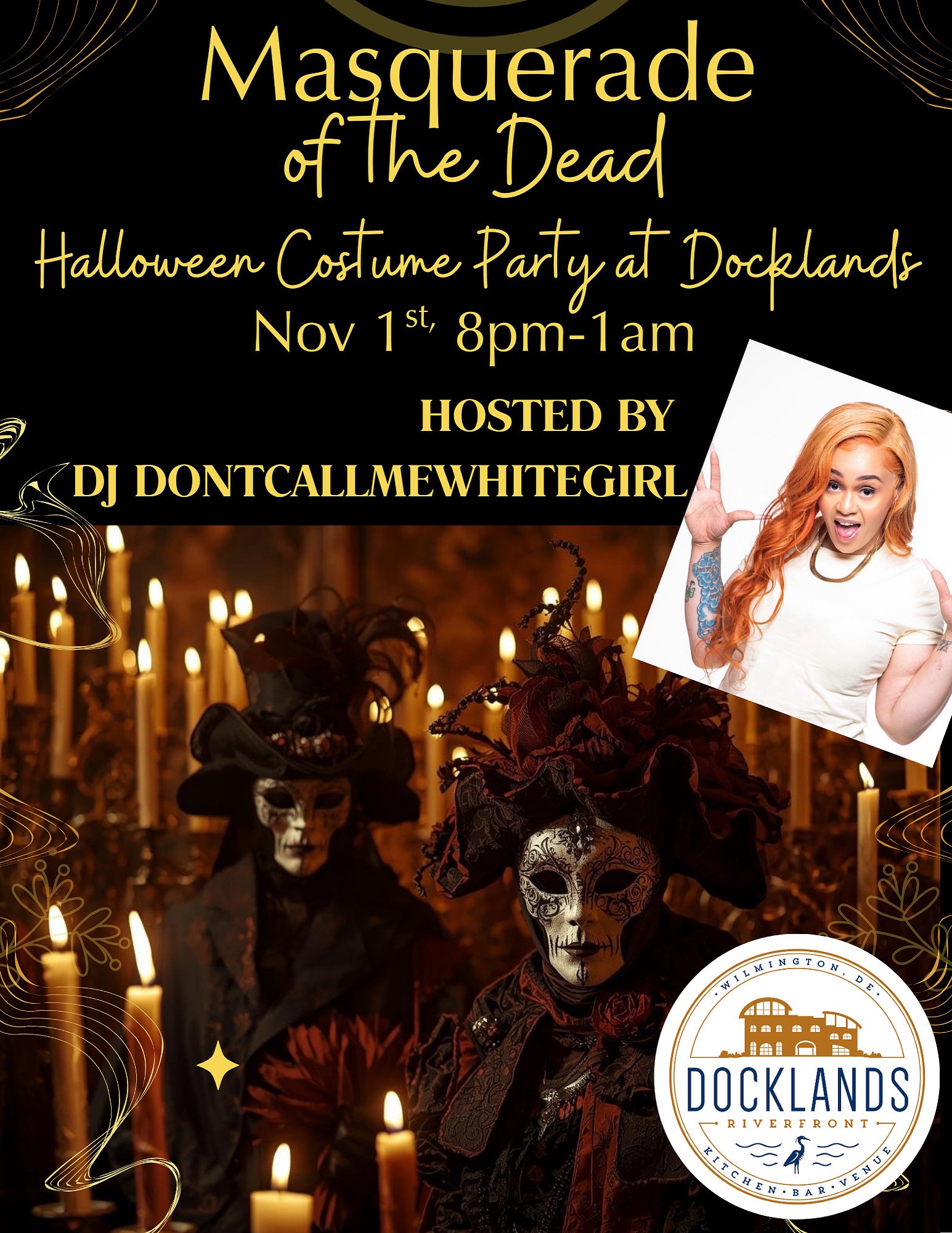 Get ready for a spooktacular night of fun, music, and costumes! Join us at the Docklands Riverfront for a Halloween celebration like no other. Dress up in your most creative and frightening costumes and compete in our costume contest for a chance to win amazing prizes. Dance the night away with our live DJ and enjoy delicious food and drinks. Don’t miss out on the most thrilling Halloween event in town. See you there!
