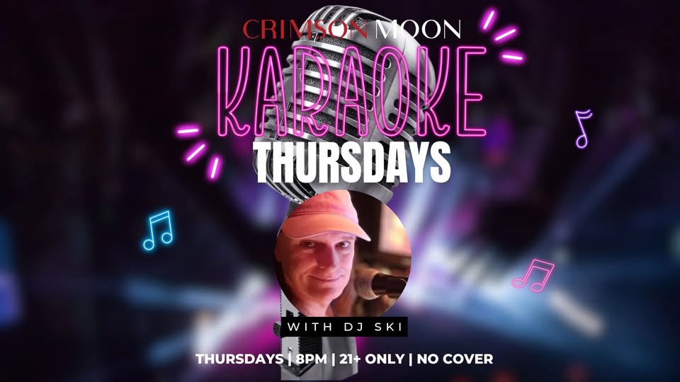 Join DJ Ski for karaoke every Thursday on the second floor at Crimson Moon.