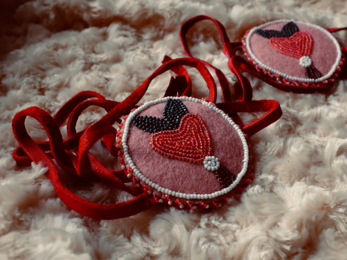 Her work blends traditional techniques with contemporary influences—from powwow regalia to modern streetwear—and is inspired by the broader community of Native artists who have shaped and elevated the field. Coursey is also guided by the values of patience, intention, and care embedded in her craft. Beadwork, she notes, is time-intensive and often requires long periods of delayed gratification. Yet the joy of seeing someone connect with one of her pieces—and the practice of praying for the wellbeing of the future wearer as she creates—imbues her work with emotional and spiritual depth.