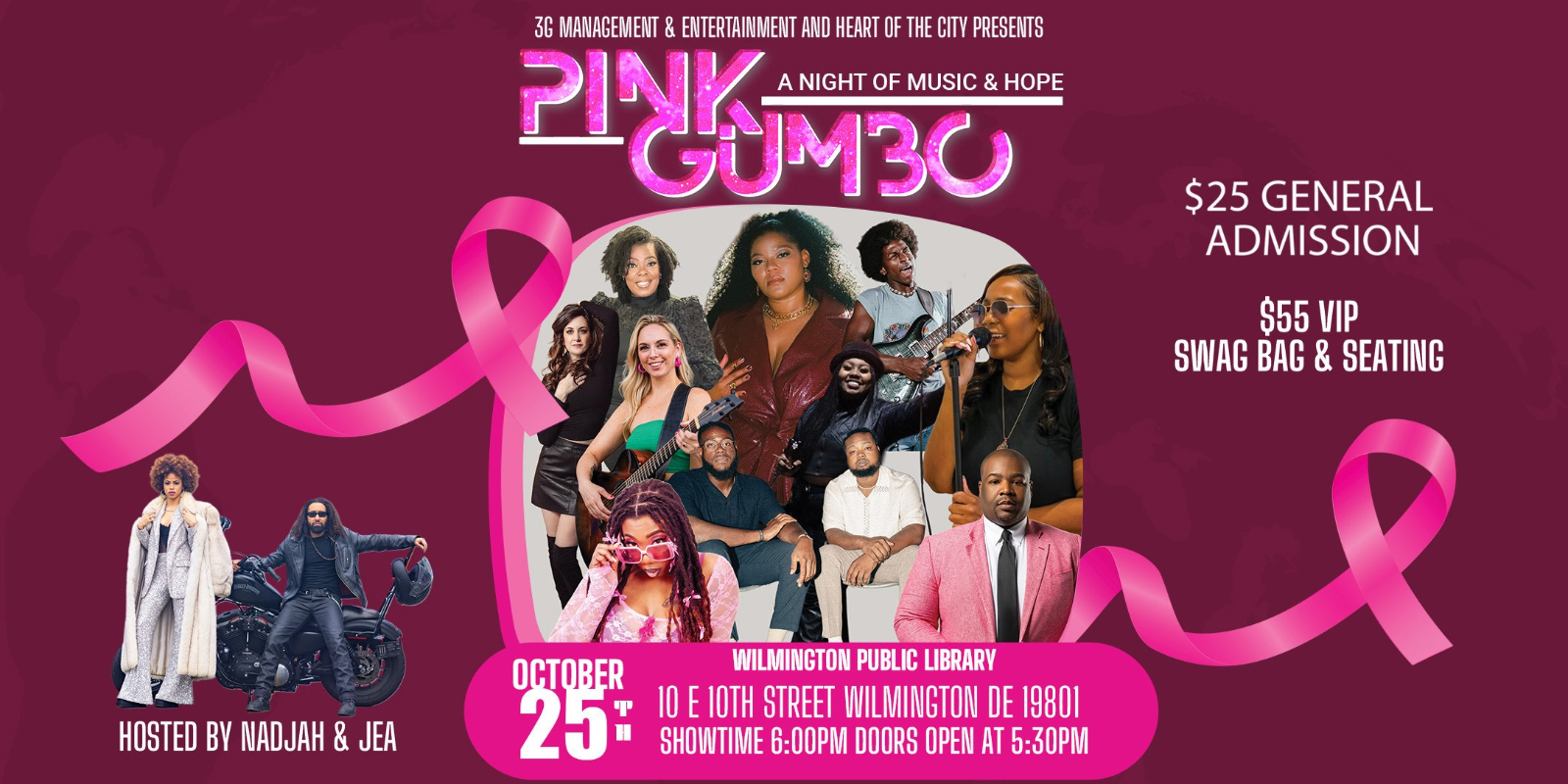 3G Management and Entertainment continues to bring together our passion for music, independent artists, and the fight against Breast Cancer in one incredible event, PINK GUMBO. Usually, this event showcases an all-female lineup. This year we have added male artists as we highlight that men are affected by breast cancer as well.